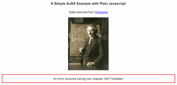 var btn = document.getElementById('request'); var bio = document.getElementById('bio'); var request = new XMLHttpRequest(); request.onreadystatechange = function() { if(request.readyState === 4) { bio.style.border = '1px solid #e8e8e8'; if(request.status === 200) { bio.innerHTML = request.responseText; } else { bio.innerHTML = 'An error occurred during your request: ' + request.status + ' ' + request.statusText; } } } request.open('Get', 'Bio.txt'); btn.addEventListener('click', function() { this.style.display = 'none'; request.send(); }); |